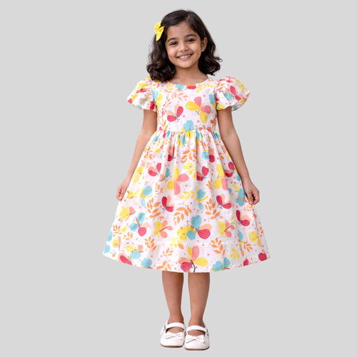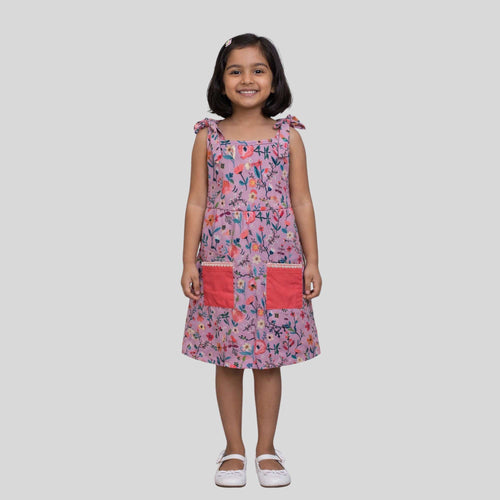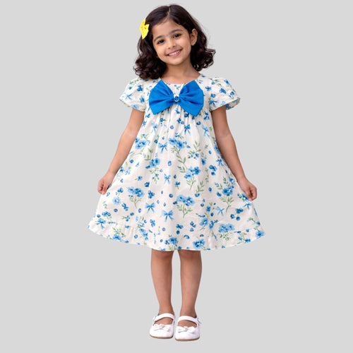 Girls Blue Floral Print Cotton Dress with Ruffled Contrast Collar – Long Sleeve | Kevora Kidswear